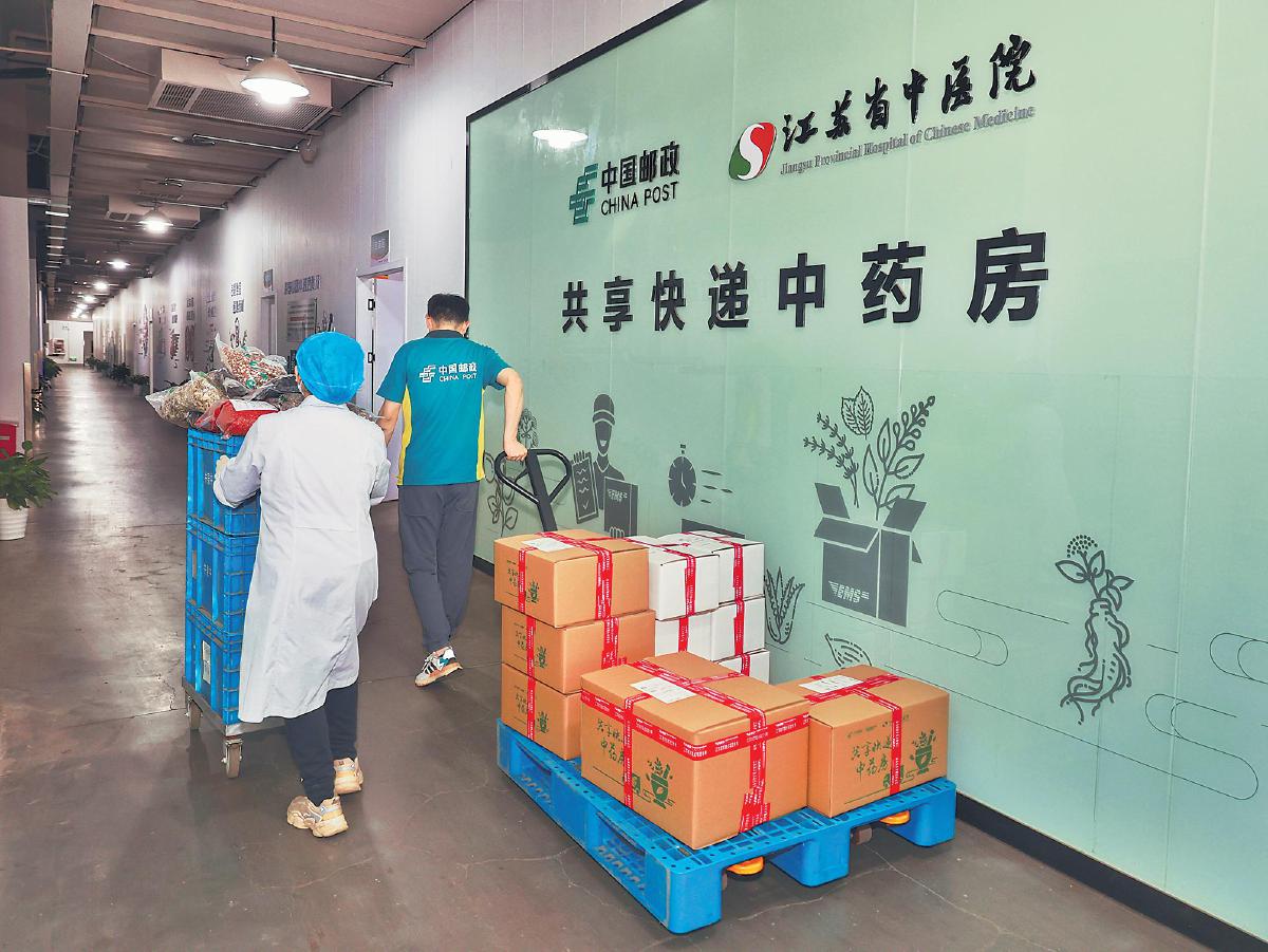 江蘇郵政與江蘇省中醫院聯手建成“共享快遞中藥房”,緩解患者焦慮,提升醫院效能。 □柏濱豐 攝