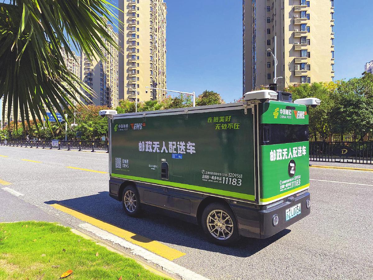 江西郵政無人配送快遞車亮相街頭。