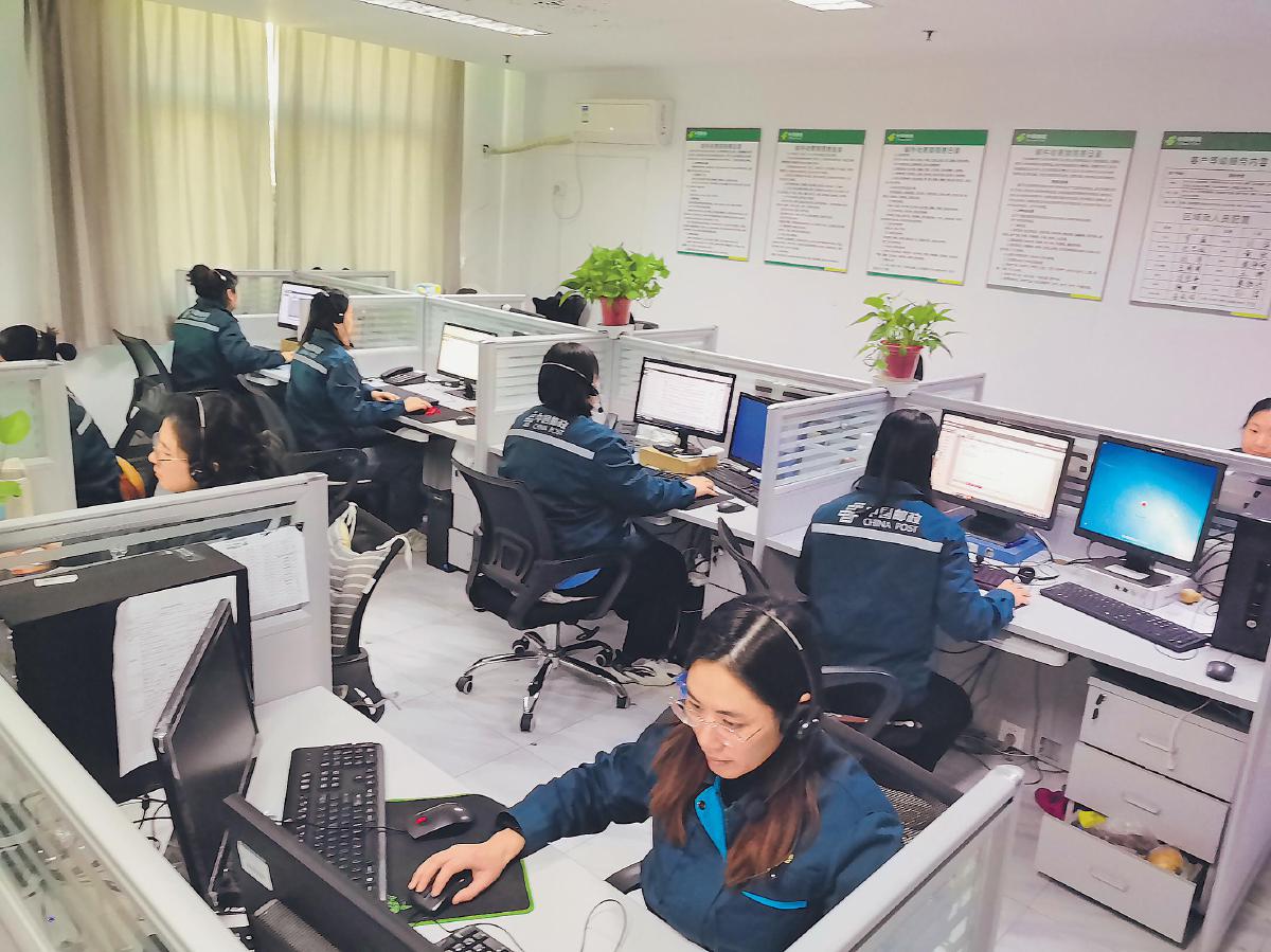 石家莊快包部客服中心全員嚴(yán)陣以待應(yīng)戰(zhàn)旺季。□吳海玲 攝