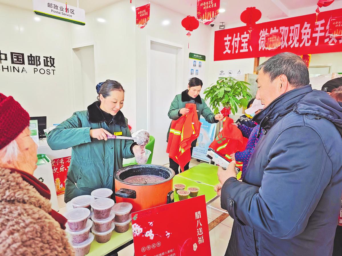1月7日一早,江蘇省灌南縣郵政分公司九隊(duì)支局聯(lián)合當(dāng)?shù)丨h(huán)衛(wèi)部門舉辦“情暖臘八,‘郵’愛你我”活動。該支局精心熬制了臘八粥,邀請新老客戶和環(huán)衛(wèi)工人免費(fèi)品嘗,并為環(huán)衛(wèi)工人贈送專屬愛心馬甲,共同感受傳統(tǒng)節(jié)日的喜慶氛圍。同時(shí),支局工作人員還現(xiàn)場講解郵政金融知識,開展反詐宣傳,增進(jìn)了與客戶的交流。