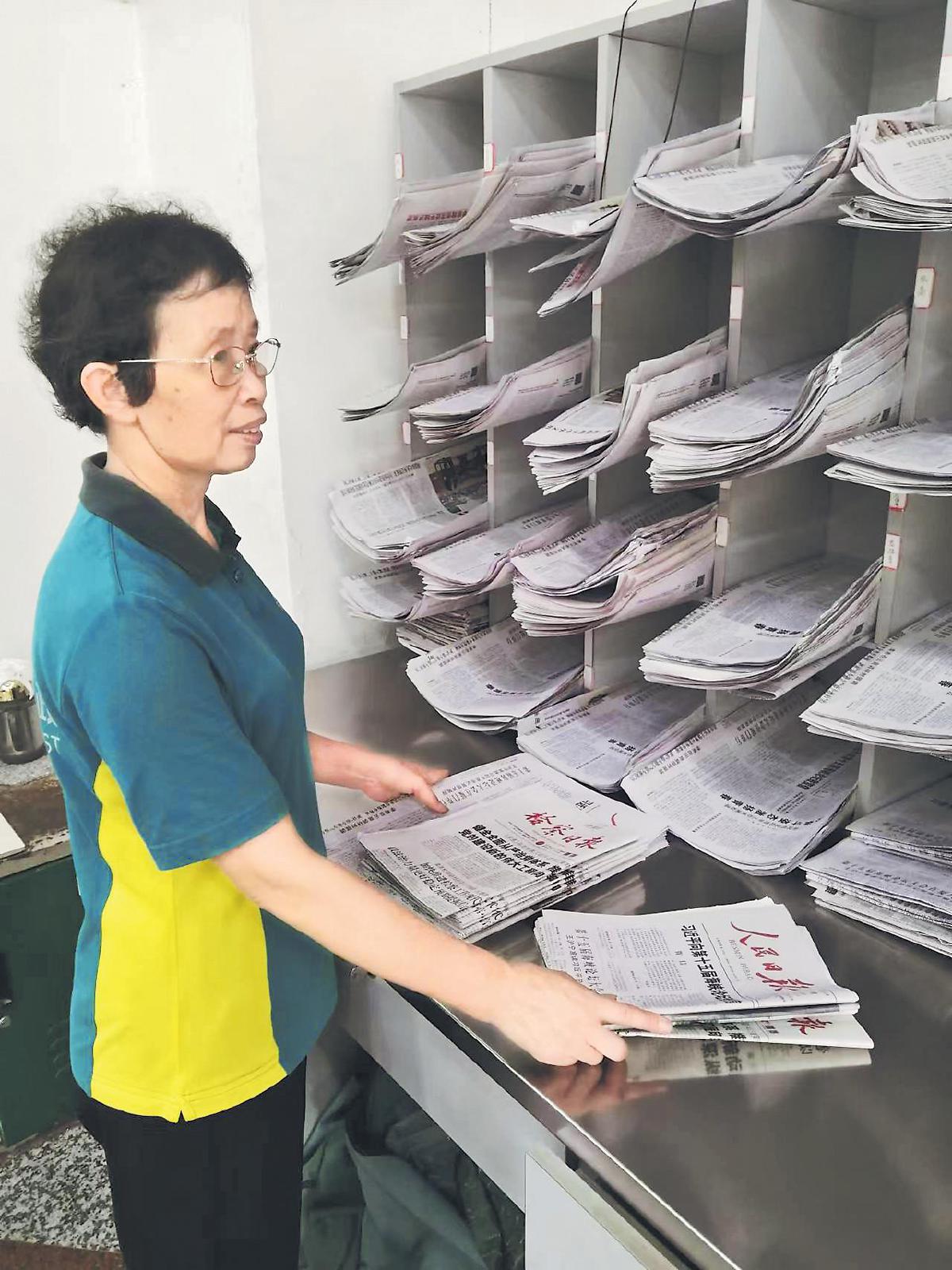 王菊蓉在分揀報紙。