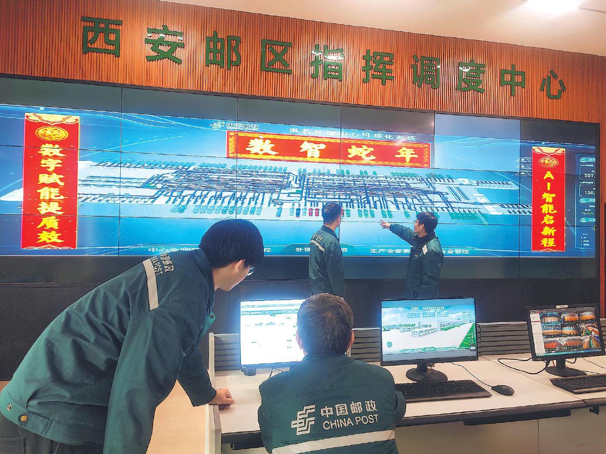 西安郵區中心使用數字化系統強化管控能力,確保春節期間生產順利進行。 □王永盛 攝