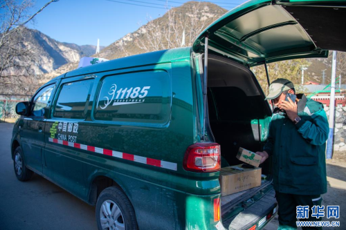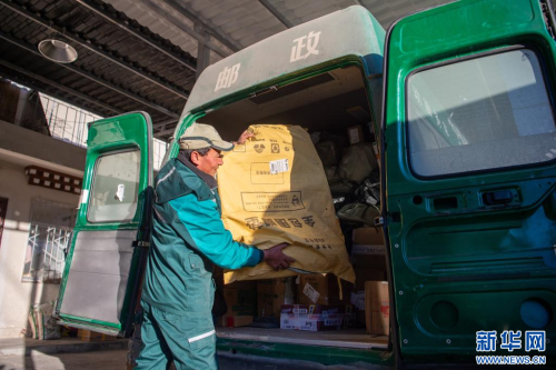 1月19日,在林芝鎮(zhèn)郵政所,郵遞員索朗次仁把準備派送的快遞裝車。