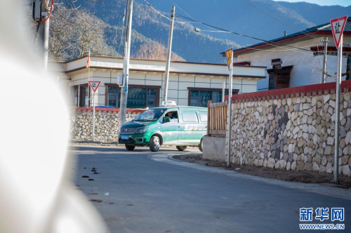 1月19日,西藏林芝市“郵快合作”新配備的郵遞車穿行在鄉(xiāng)村小巷。