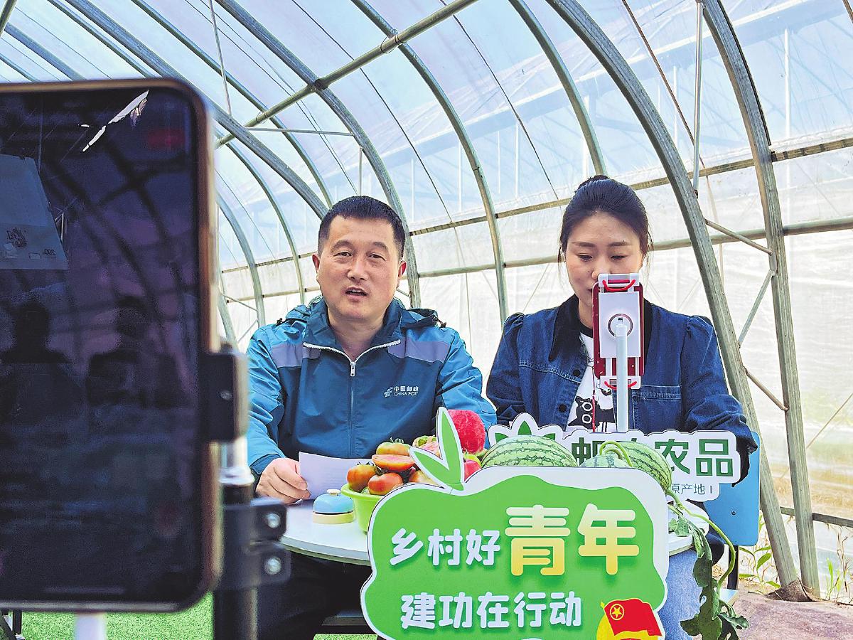 連云港市郵政分公司開展直播活動,主推“灌云果蔬”基地農產品。
