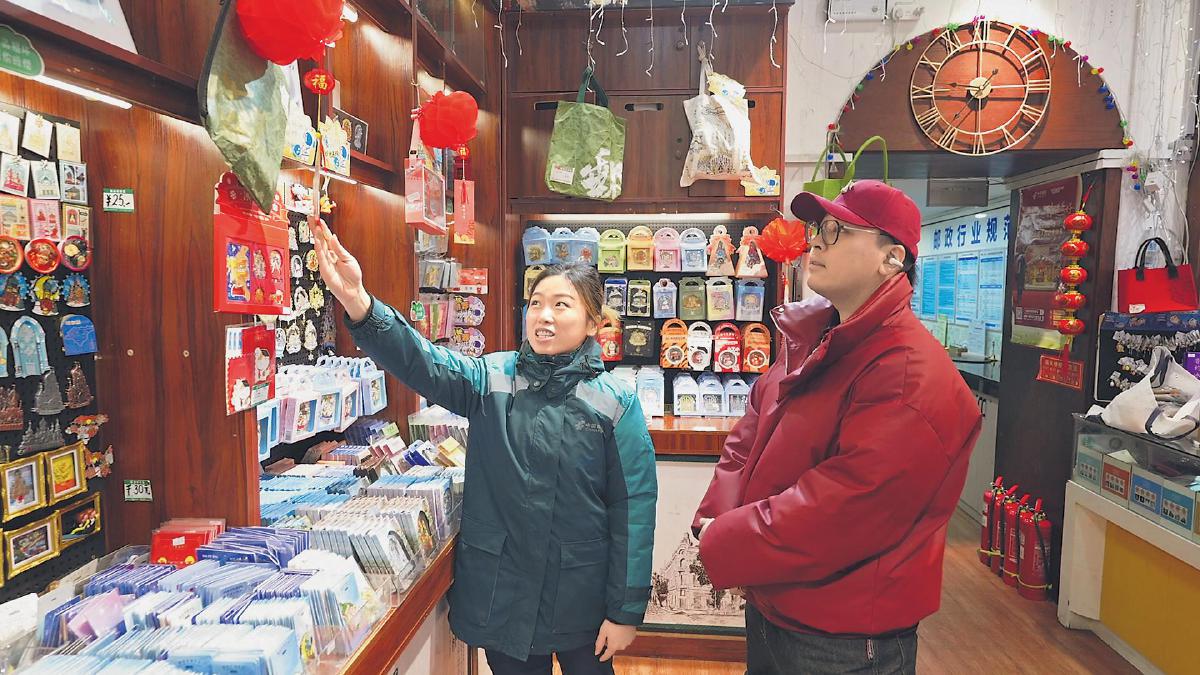 主題郵局里,帶有亞冬會標(biāo)志和哈爾濱冰雪特色的明信片、郵票以及精美的紀(jì)念郵戳等吸引了眾多游客觀賞和購買。大家紛紛與亞冬會吉祥物、主題郵局里的冰雪元素合影留念,并在明信片上寫下元宵節(jié)的祝福語和對亞冬會的期許,留存下美好的時刻。