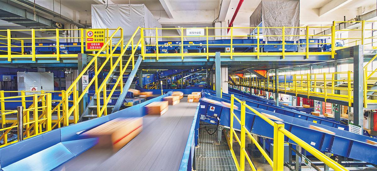在廣州郵區(qū)中心機(jī)場北處理中心,郵件在傳送帶上快速流轉(zhuǎn),經(jīng)過智能分揀系統(tǒng)的精準(zhǔn)識別和快速分揀,高效完成內(nèi)部作業(yè)處理。□楊曉明 攝
