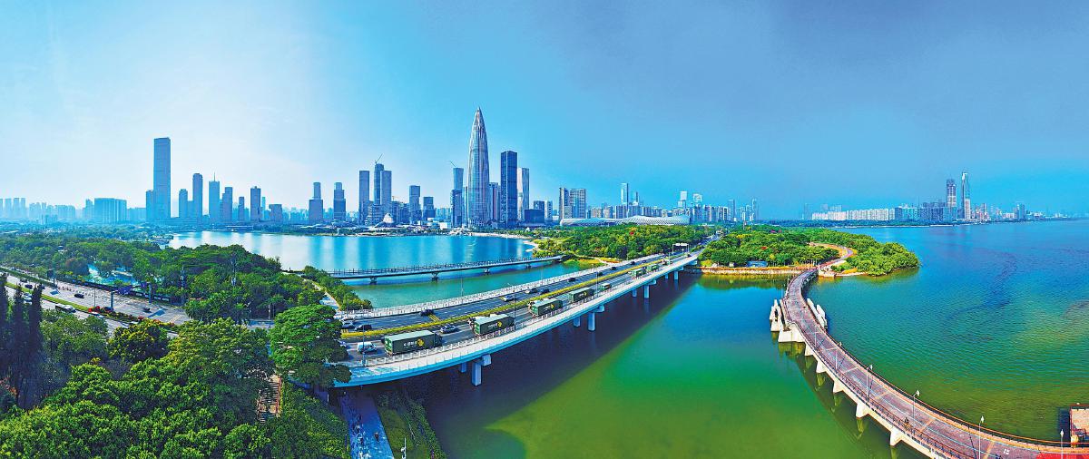 郵政車隊(duì)行駛在繁華的深圳灣畔,為當(dāng)?shù)鼐用窈推髽I(yè)提供了便捷高效的郵政服務(wù)。□陳師 攝