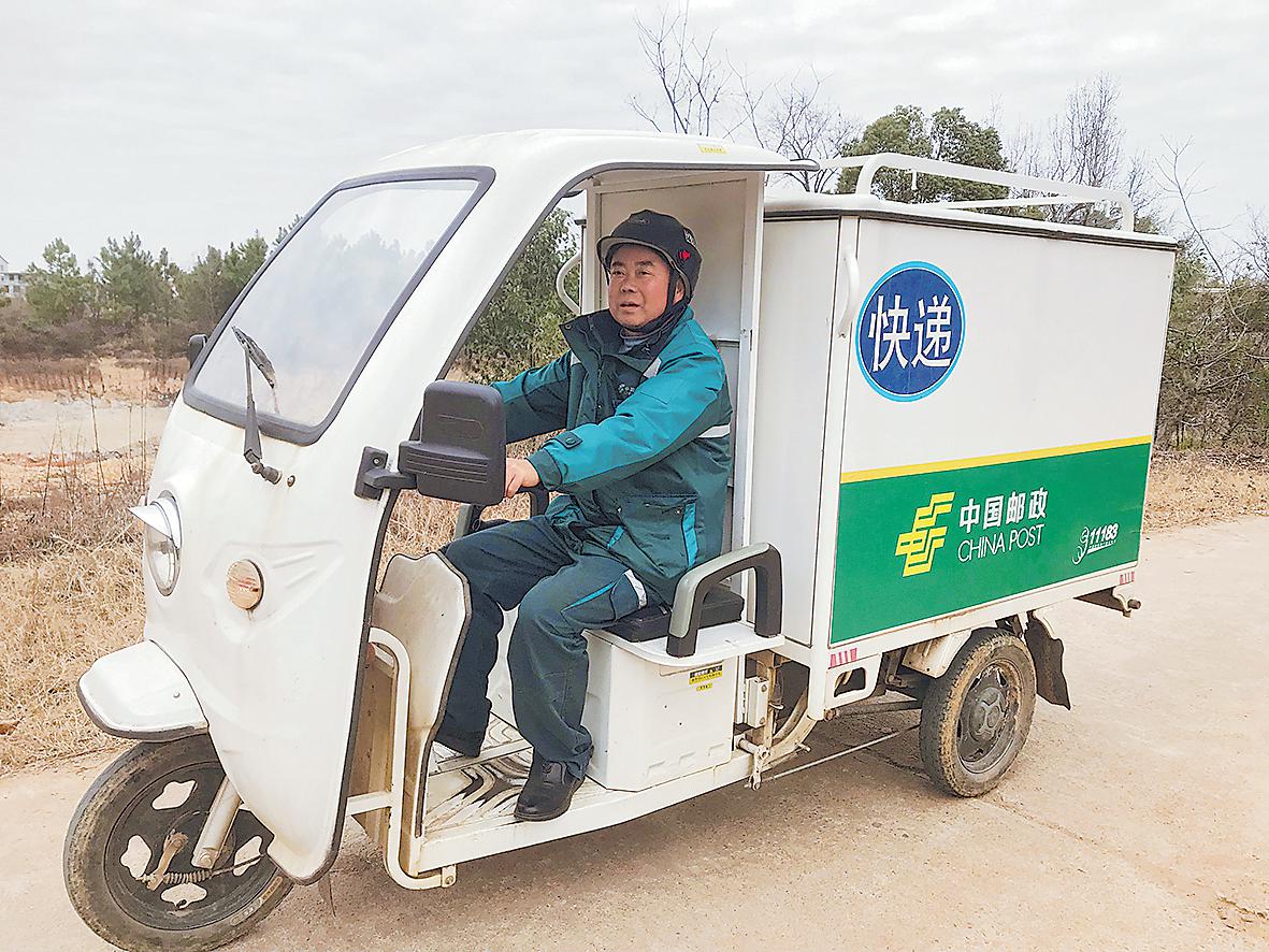 一輛普通三輪車、一身綠色制服、一個裝滿信件和報紙的郵包……無論嚴寒酷暑,在泰和縣塘洲鎮蜿蜒的鄉村郵路上,總能看到陳致諭忙碌的身影。