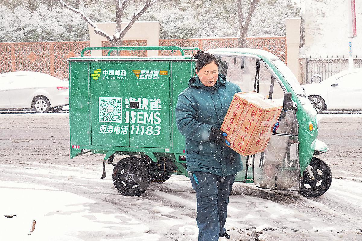 “她”力量是勇敢與堅韌。近日,河南迎來了“桃花雪”,面對投遞路上的困難,河南省商丘市郊區(qū)郵政分公司南京東路攬投部投遞員李長娥,冒著凜冽寒風(fēng)與紛飛雪花,將快遞包裹按時送到客戶手中。她的身影也成為雪天里一道令人動容的“風(fēng)景”。□何水清 攝影報道