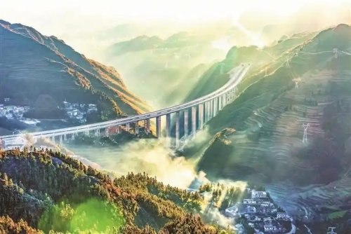 郵儲銀行貴州省分行支持建設(shè)的盤興高速背武甲特大橋。
