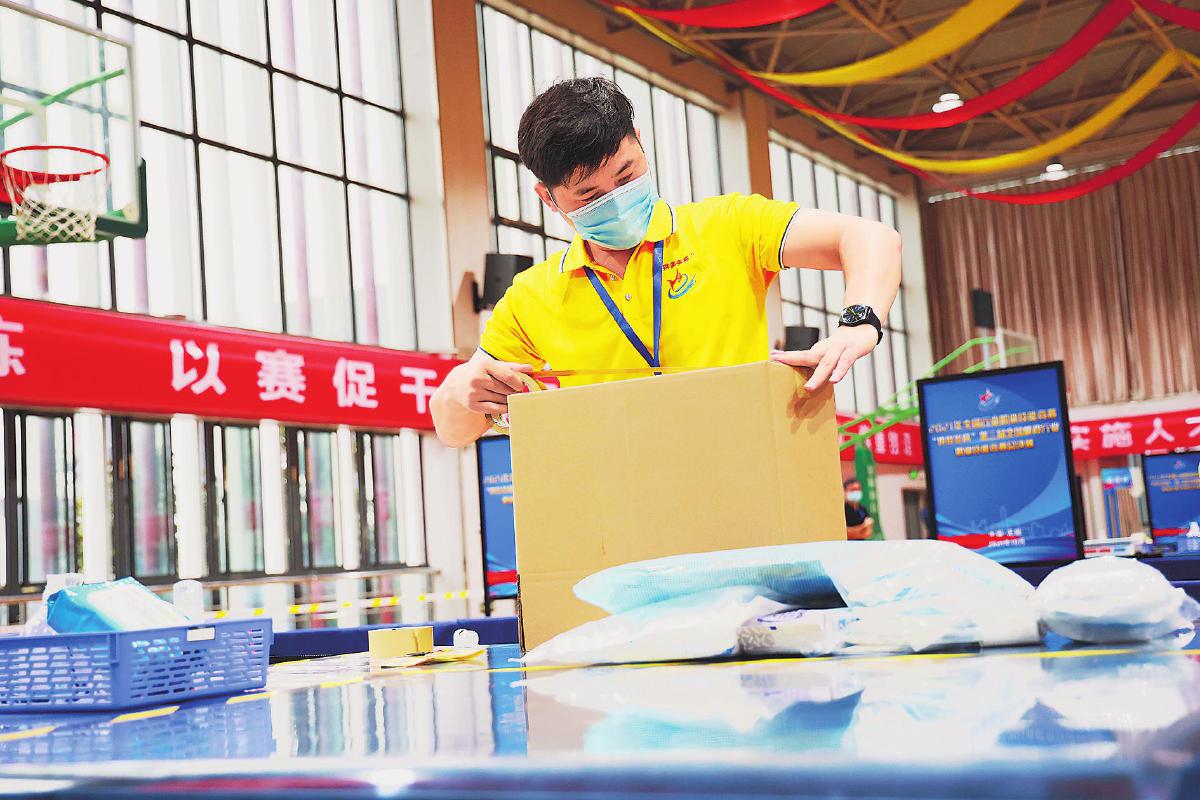 楊輝在業(yè)務(wù)技能比賽中。