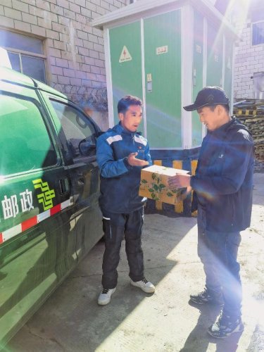 巴桑頓珠投遞郵件時(shí),熱情地向客戶介紹郵政業(yè)務(wù)。
