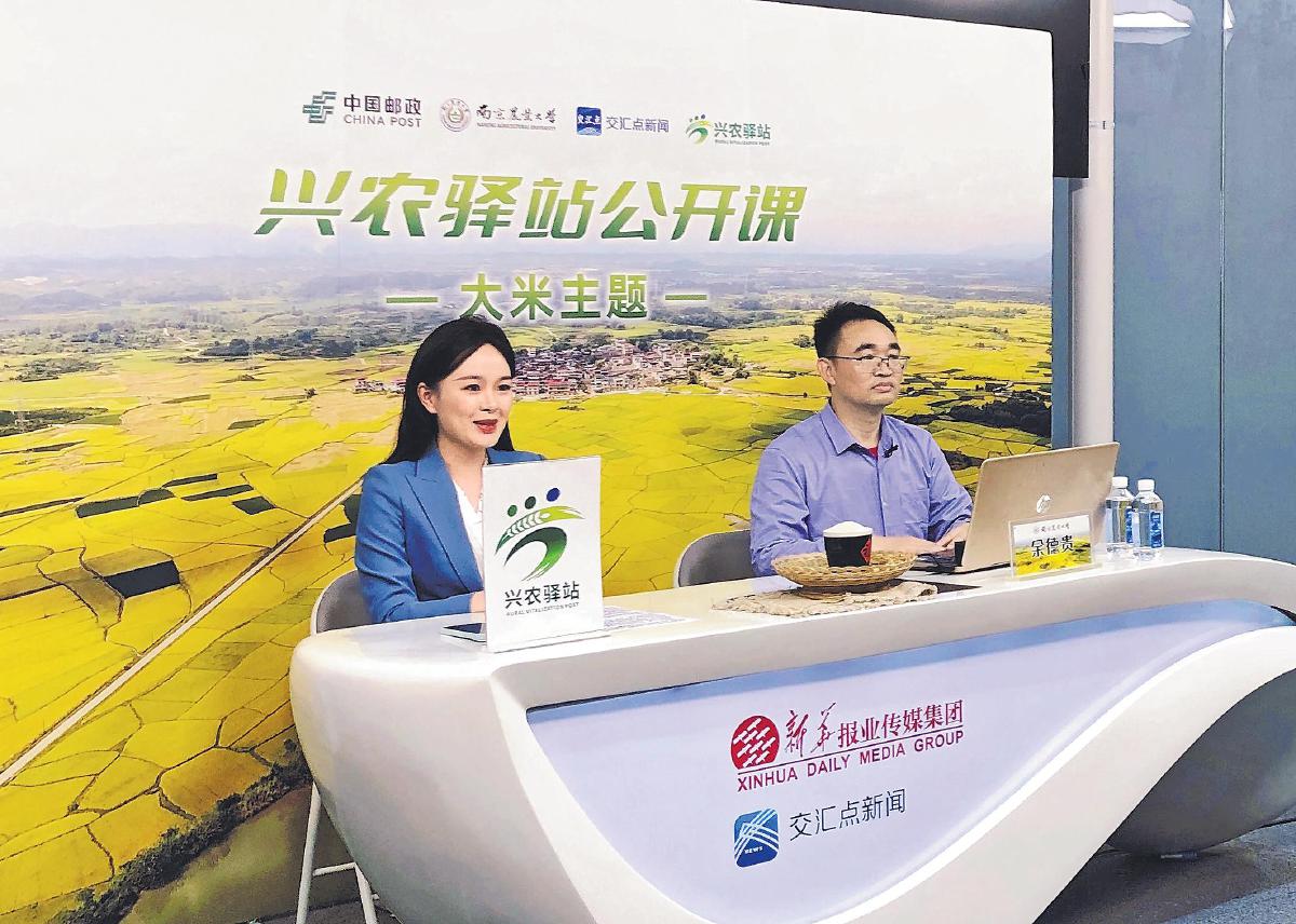 江蘇省分公司市場部重點客戶室經理、“興農驛站”項目運營負責人彭秋收介紹說:“河蟹、大米、春茶……幾乎所有江蘇特色農產品都在‘興農驛站’線上公開課直播周活動中亮過相,‘線上+線下’更好地圍著農民轉、帶著農民干、幫著農民富。在這一點上,郵政會盡己所能,為服務鄉村振興多做實事。”