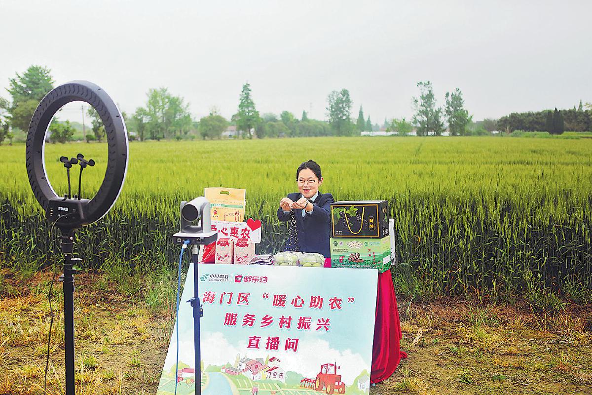 南通市海門區分公司將“興農驛站”直播間設在田間地頭。(圖片由江蘇省分公司市場部提供)