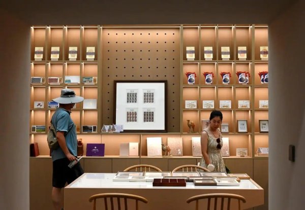 7月19日,游客在懸泉置主題郵局參觀。