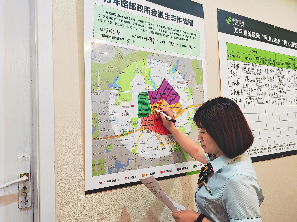 一系列從上至下、協同聯動的管理舉措,讓“網點+站點”的“同心圓”管理效能更上一層樓。以萬年路郵政所為例,通過發揮支局副經理、渠道經理、銀行經理“鐵三角”作用,為13個站點安裝了“郵掌柜”系統,汰換滯銷商品,疊加社區團購、分銷大單品等業務。數據顯示,今年1—7月,12個站點點均疊加業務4.38項,累計發生業務18.26萬筆。