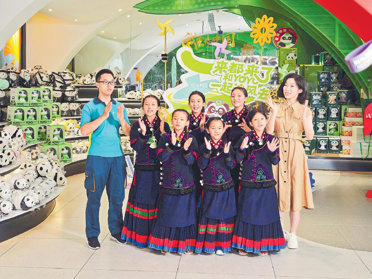 在成都世運會開幕式上以一曲《萬千》驚艷亮相的四川涼山彝族自治州普格縣“妞妞合唱團”,近日受邀參加《這局好玩兒》節目“沿著郵路看中國·成都站”活動。這群大山里的孩子走進成都熊貓郵局,開啟了一場融合郵政文化與熊貓主題的游學之旅。其中,最令孩子們驚嘆的是“AI郵差”互動裝置,通過AI算法,人像與竹林、IFS熊貓雕塑等場景融合,生成定制明信片。“我要把成都的美景寄給山里的伙伴!”一位“妞妞”興奮地說?;顒咏Y束前,孩子們即興獻唱原創歌曲。清澈的童聲如山泉流淌,洗去夏日燥熱。
