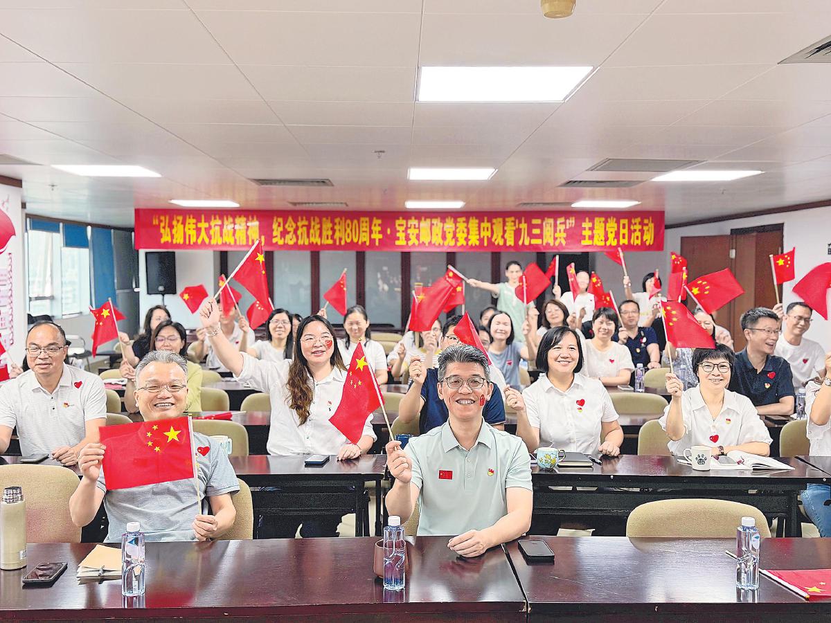 深圳市寶安區郵政分公司9月3日上午開展主題黨日活動,組織觀看紀念大會直播,引導黨員干部在回望歷史中堅定理想信念,在緬懷先烈中凝聚奮進力量。 □劉靜娜 攝