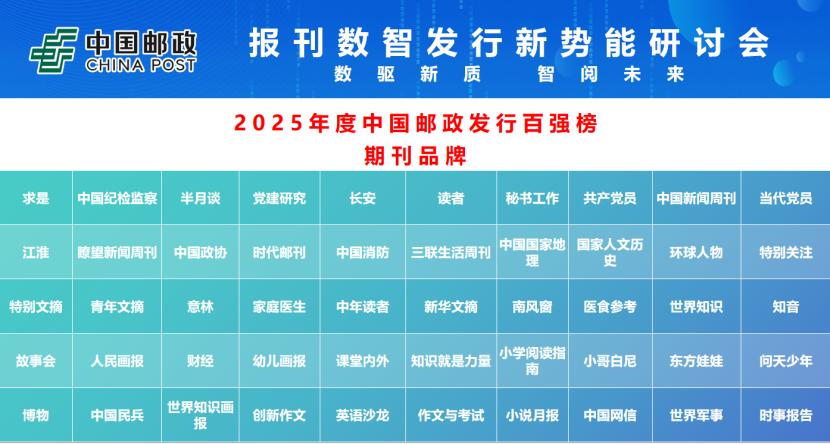 入選“2025年度中國郵政發行百強榜”的是: