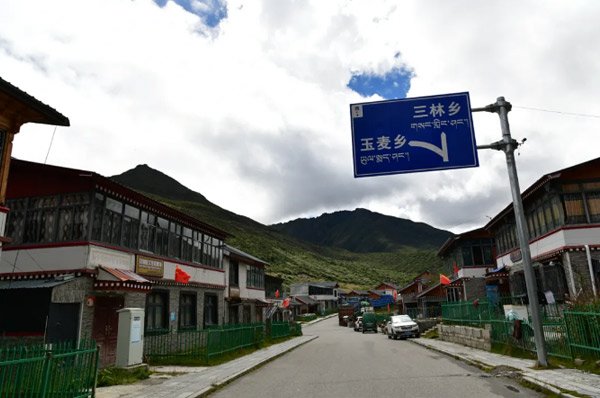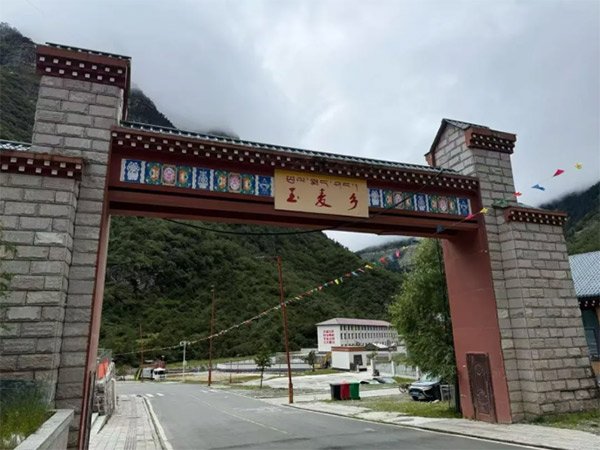 在“玉麥鄉”標牌下,采訪組迎來了玉麥鄉郵政代辦所營業員索朗卓嘎,和她一起走進綠意盎然的村落,清澈的河水穿村而過,經幡在頭頂隨風起舞。