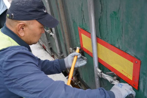 11點,當來自哈薩克斯坦的郵車到達交換站后,郵政員工打開中國郵政的郵車車廂,經海關核對和確認后,將一個個總包快速卸下,換裝進哈薩克斯坦的郵車。這批郵件將到達哈薩克斯坦郵政,經當地海關查驗放行后,再按址投遞到客戶手中。