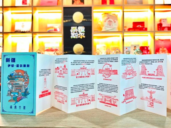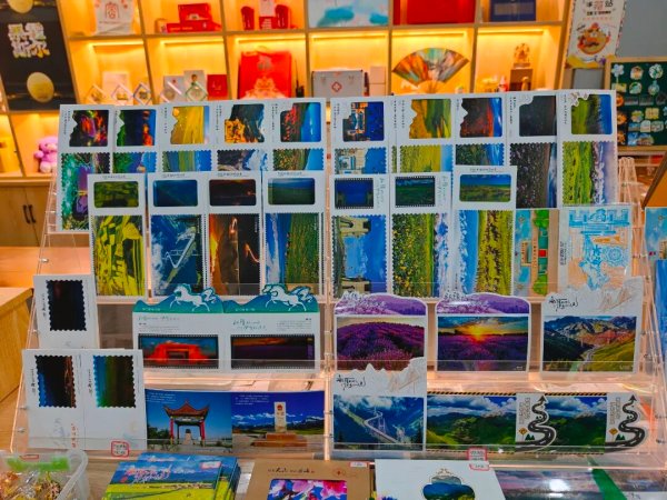 走進郵局,仿佛打開了一個濃縮了霍爾果斯風情的“珍寶匣”。國門造型的冰箱貼、印有界碑圖案的明信片、匯聚當地風光的手繪地圖……每一件文創都凝聚著巧思,讓游客愛不釋手。