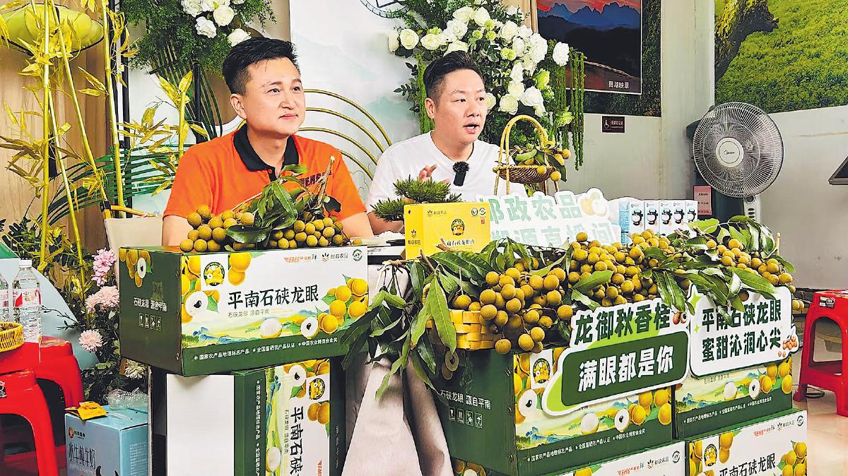 “石硤龍眼是貴港市平南縣的特產(chǎn),作為國家地理標(biāo)志認(rèn)證的水果,它的特點(diǎn)是果肉厚實(shí)、入口留香。”在石硤龍眼核心基地,郵政直播團(tuán)隊(duì)走進(jìn)田間地頭,用鏡頭展示龍眼采摘、分揀的全過程,吸引網(wǎng)友紛紛下單;一旁的郵政員工根據(jù)訂單,將龍眼打好包、貼好單、裝上車,發(fā)往全國各地。僅一場直播,貴港郵政就賣出1萬公斤龍眼,直播GMV達(dá)100余萬元。