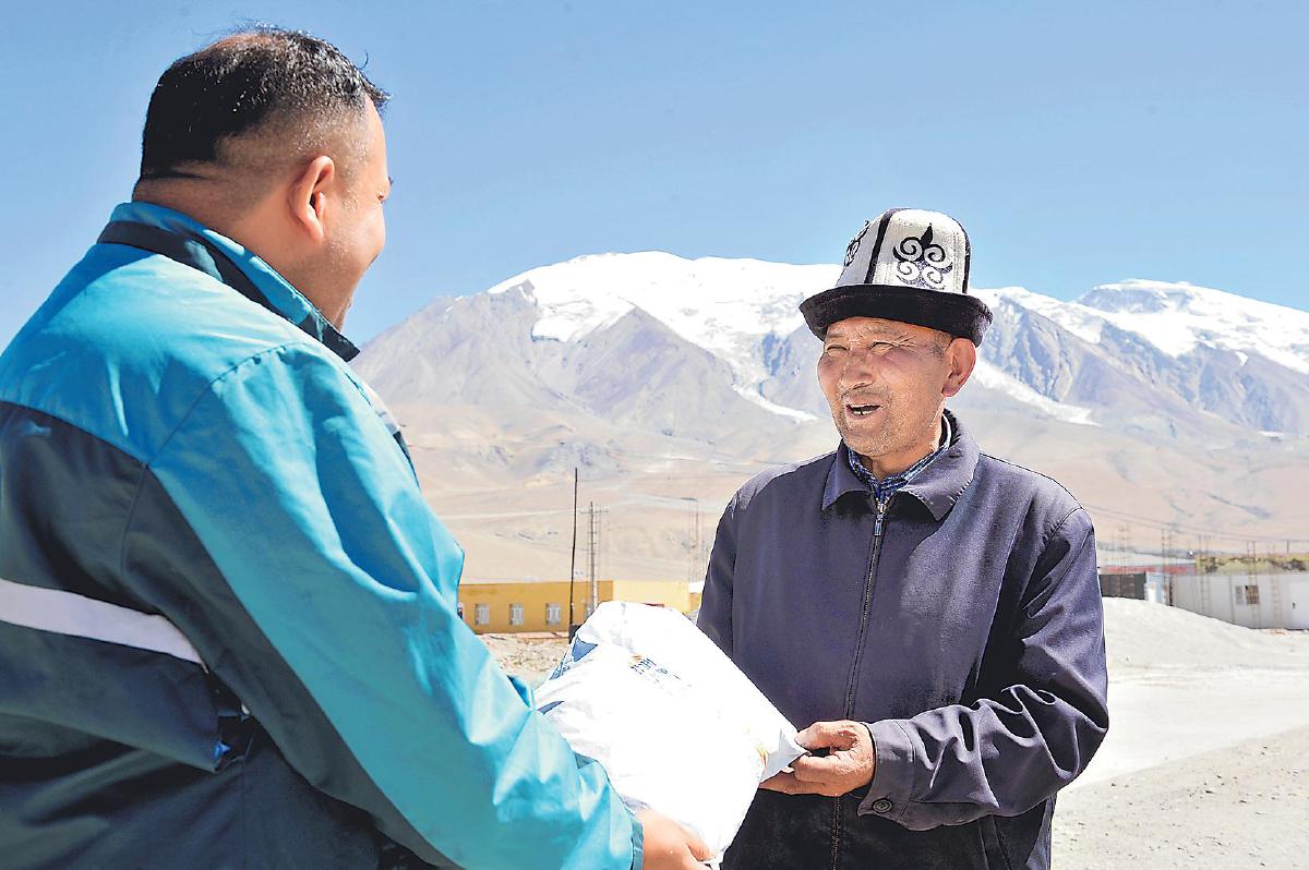 阿克陶縣郵政分公司投遞員阿不都賽米·賽買提為當?shù)卮迕袼桶祥T。