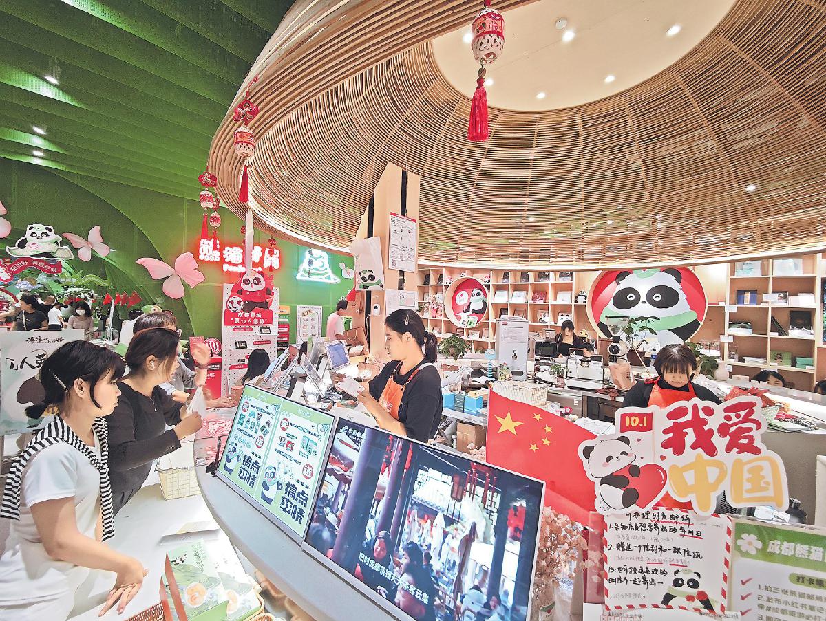 “蓋完這枚‘巴適’方言章,給女兒的國慶禮物就集齊了!”蘇州游客王先生手持“護照本”,在蓋章區加蓋紀念章。精心挑選明信片的顧客在千款圖案前流連忘返,咖啡區坐滿了手持熊貓主題飲品的游客,留言墻上貼滿了對祖國和成都的祝福語。這熱鬧的場景,正是熊貓郵局作為文創地標影響力的生動體現。它不僅是一處郵政服務場所,更是連接傳統與現代、傳遞成都文化與熊貓文化的重要樞紐,讓每一份國慶心愿跨越山海抵達目的地,也讓成都的文化魅力隨著一枚枚熊貓郵戳傳播到世界各地。