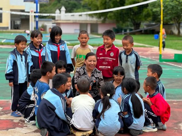 郭玉琴與老滿坡完全小學的孩子們親切交流