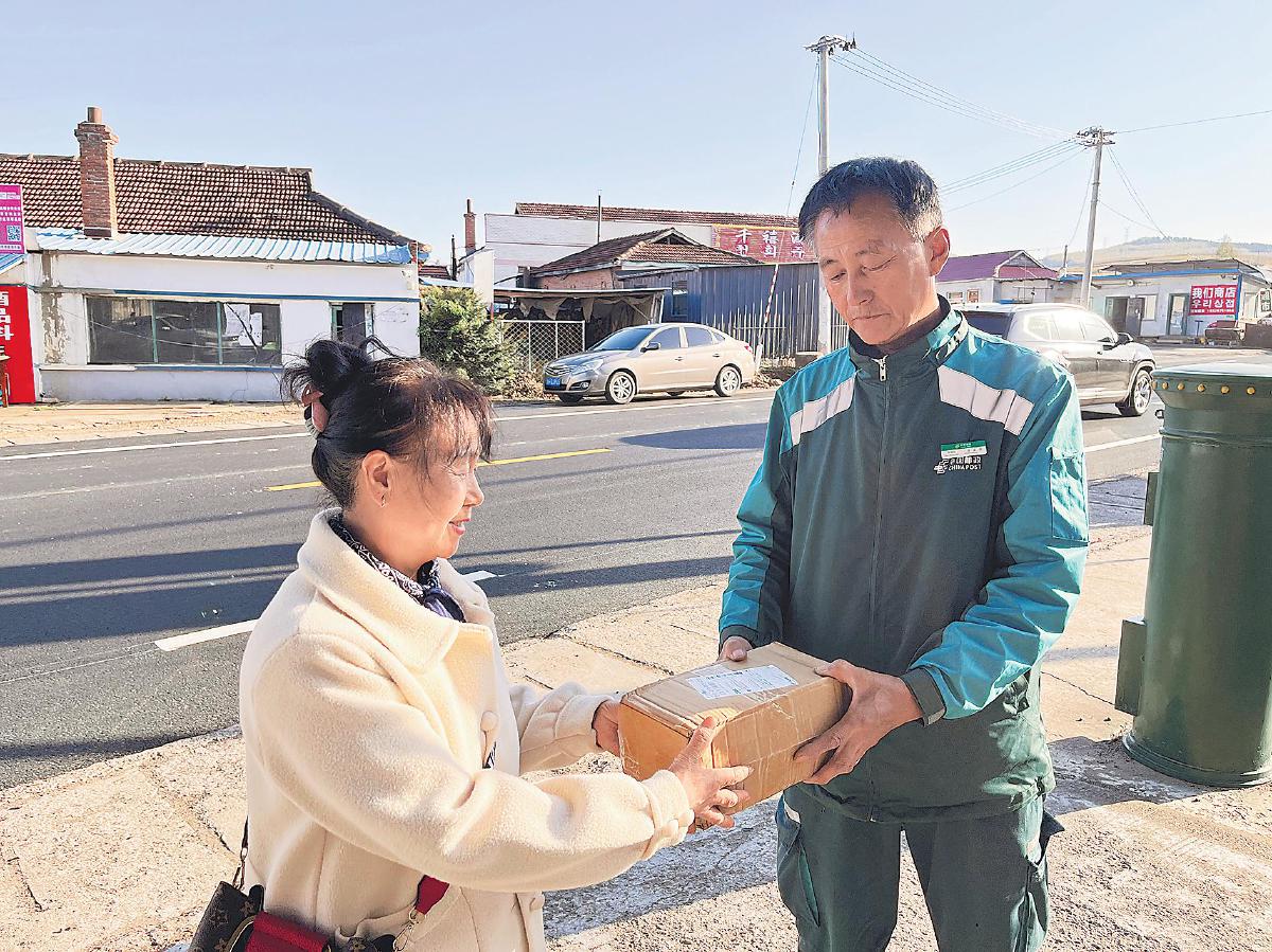 11月7日,吉林省圖們市長(zhǎng)安郵政支局鄉(xiāng)郵員李愛軍停穩(wěn)車,抱著快遞包裹大步走進(jìn)金大爺?shù)脑鹤印!按鬆敚畠航o您寄的生鮮到啦。‘雙11’快遞多,我給您先送過來。”每年“雙11”,都是李愛軍最忙的日子,日均投遞量比平時(shí)翻了近一倍,可他依舊做細(xì)服務(wù),哪怕繞點(diǎn)遠(yuǎn)路,也讓每一份期待都“準(zhǔn)時(shí)到家”。