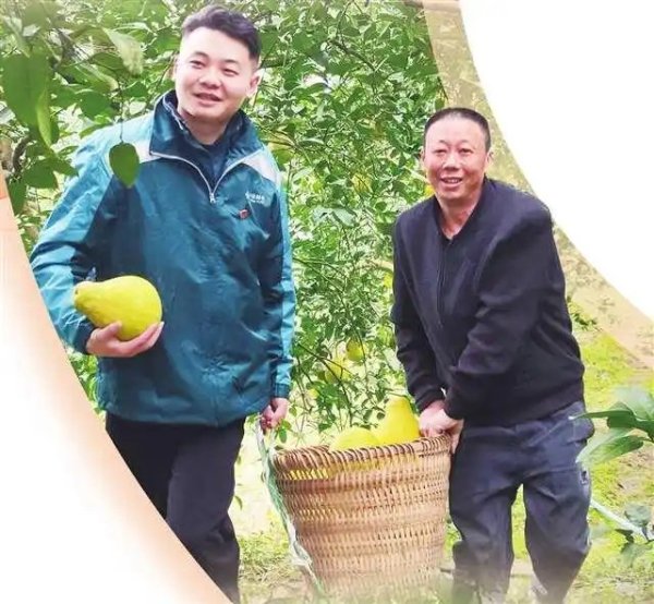 時(shí)值長(zhǎng)壽柚豐收季節(jié),郵政員工在鄰封鎮(zhèn)鄰封村助力柚農(nóng)采摘柚子。