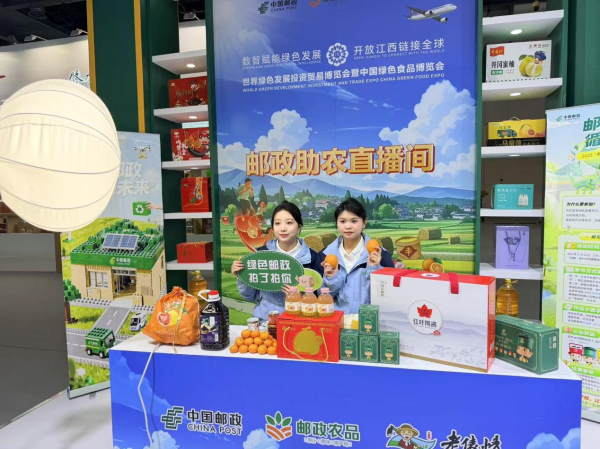 “服務城鄉,通達天下”郵政展位系統劃分為“普惠郵政”“綠色郵政”“智慧郵政”三大板塊,生動呈現從田間到餐桌的數智化全鏈條服務能力。展位還集中陳列了通過郵政渠道暢銷全國的南昌拌粉、優質大米、山茶油等名優特產,立體展現郵政服務鄉村振興的綜合成效。