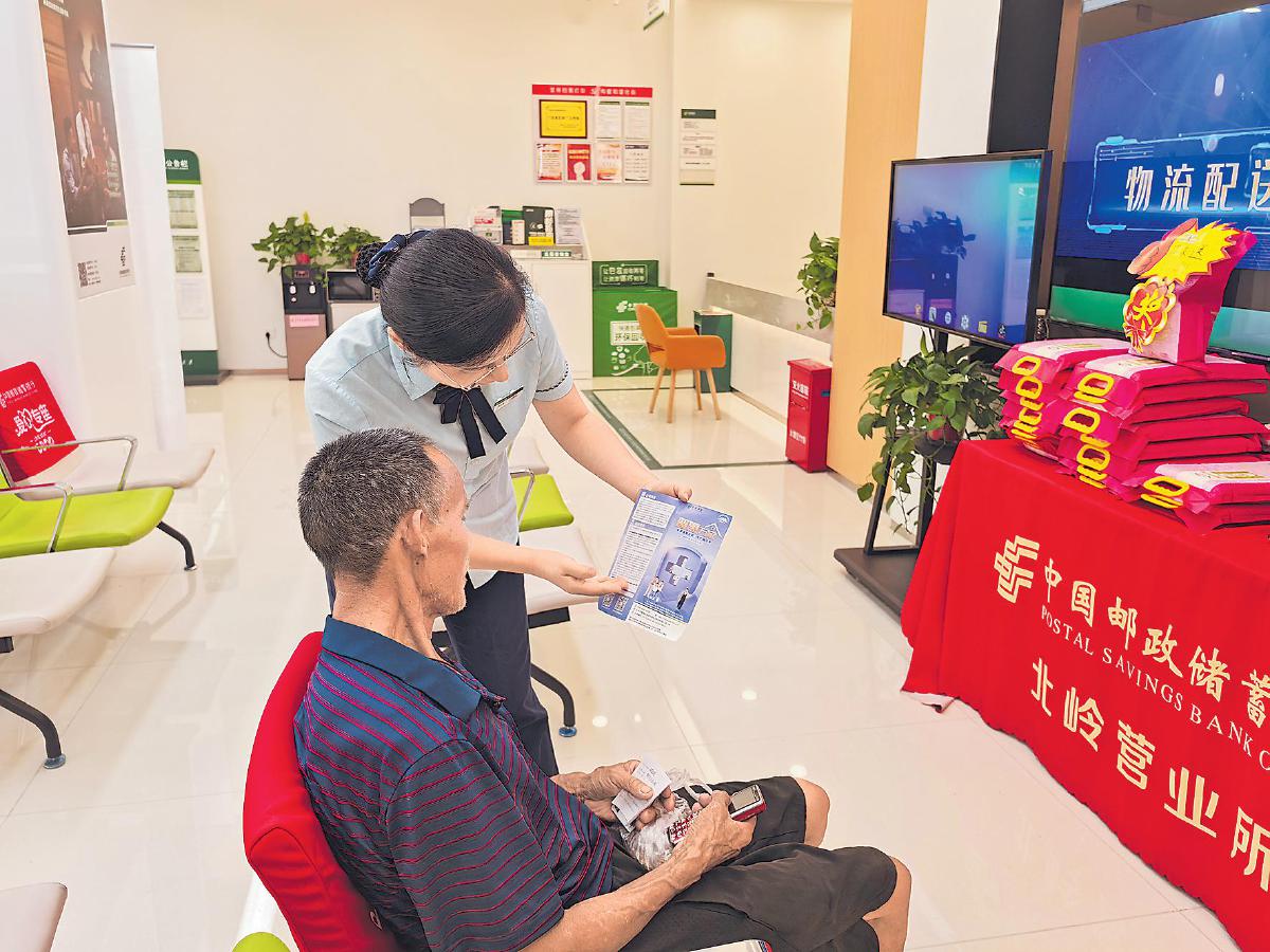 針對老年群體需求,郵政工作人員宣傳定制化普惠保險業務。