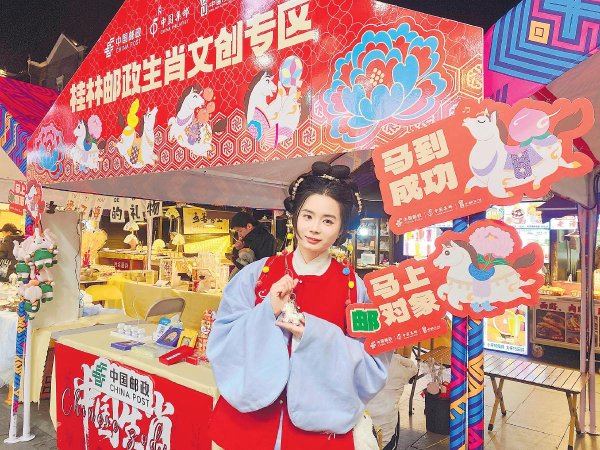 1月1日至3日,廣西壯族自治區桂林市東西巷旅圩集市熱鬧開集。桂林市郵政分公司積極參與,通過郵政文創展示、主題打卡板布置,為市民和游客打造一場可玩、可購、可郵的沉浸式文化體驗。