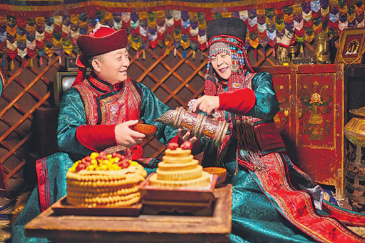 身著傳統蒙古族服飾的夫妻。