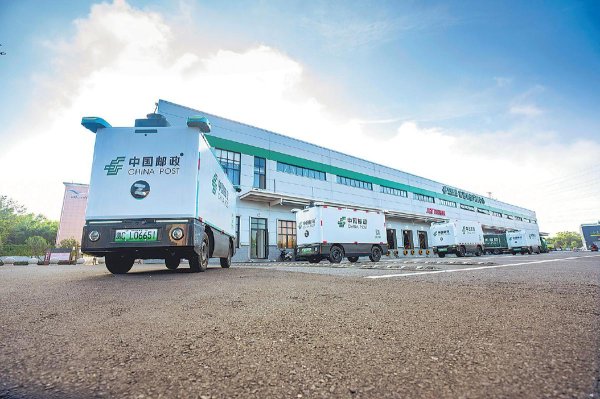 1月19日,在河南省淅川縣寄遞物流共配中心,郵政無人車滿載郵件整裝待發(fā)。 □劉力揚 攝