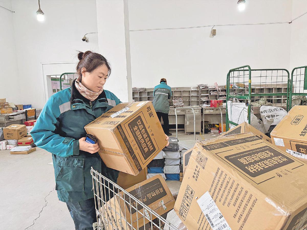 “春節期間很多快遞驛站歇業,不少商戶和居民等著收件,今天是假期最后一天,復工復產的件量格外大?!壁w艷萍一邊整理著包裹,一邊笑著跟記者打招呼。她負責的投遞區域有多個社區和商貿市場,客戶中既有老舊小區的獨居老人,也有急于補貨的臨街商戶,是攬投部里最繁雜的段道之一。